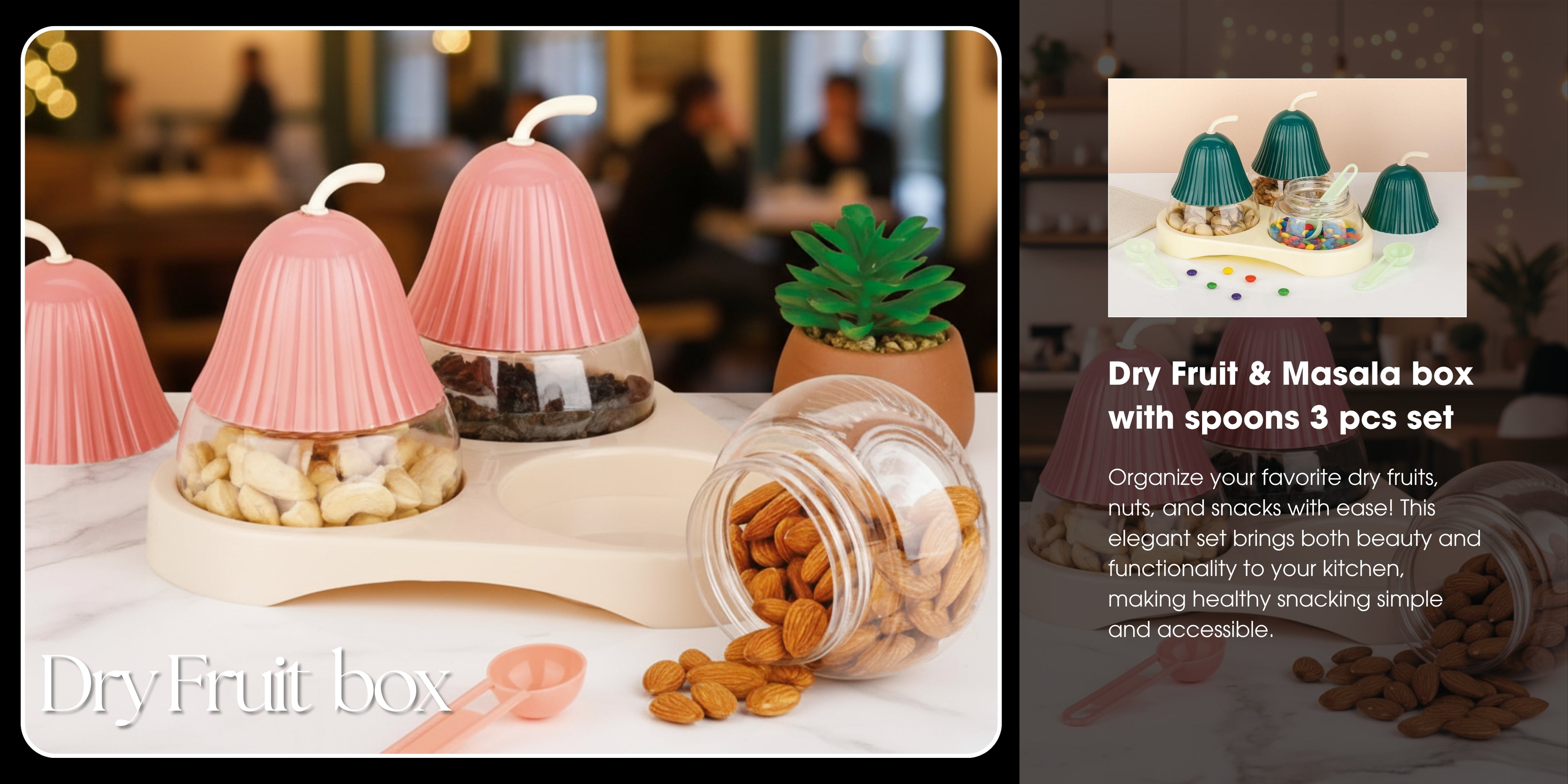 CEVENZA Dry Fruit & Masala box with spoons 3 pcs set