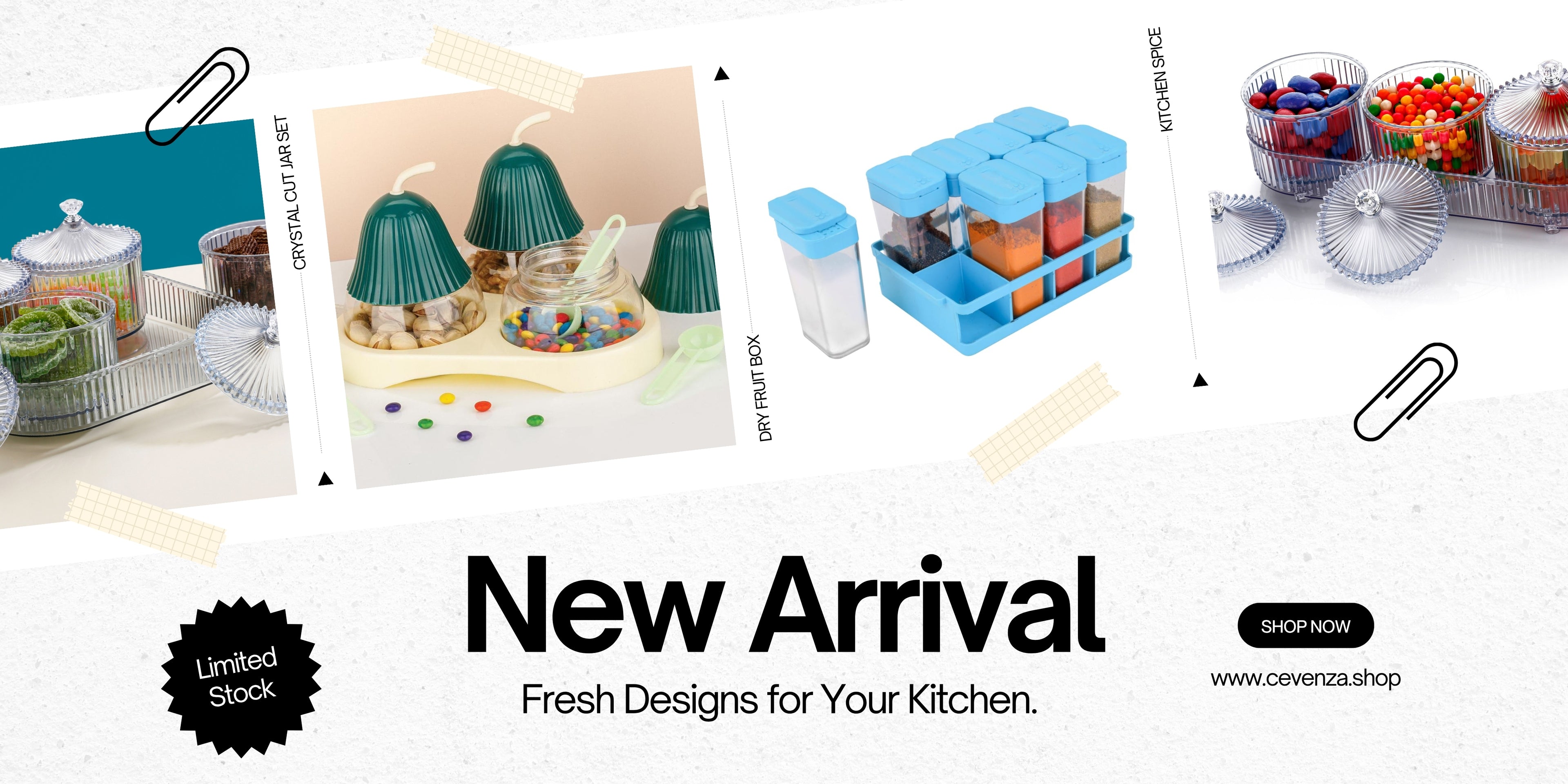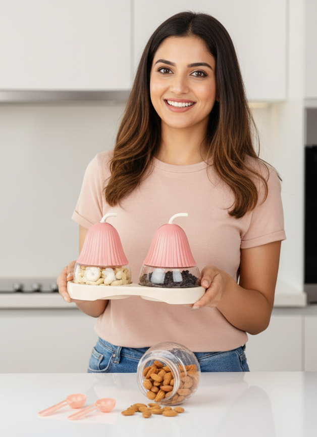 CEVENZA 3-Piece Dry Fruit Storage Jar Set with Tray & Diamond Lid
